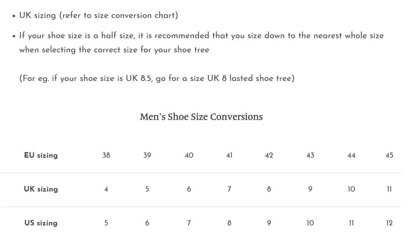 It is always recommended that you use shoe trees to maintain the size and shape of your shoes, as this will ensure a consistent fit and appearance for years to come.