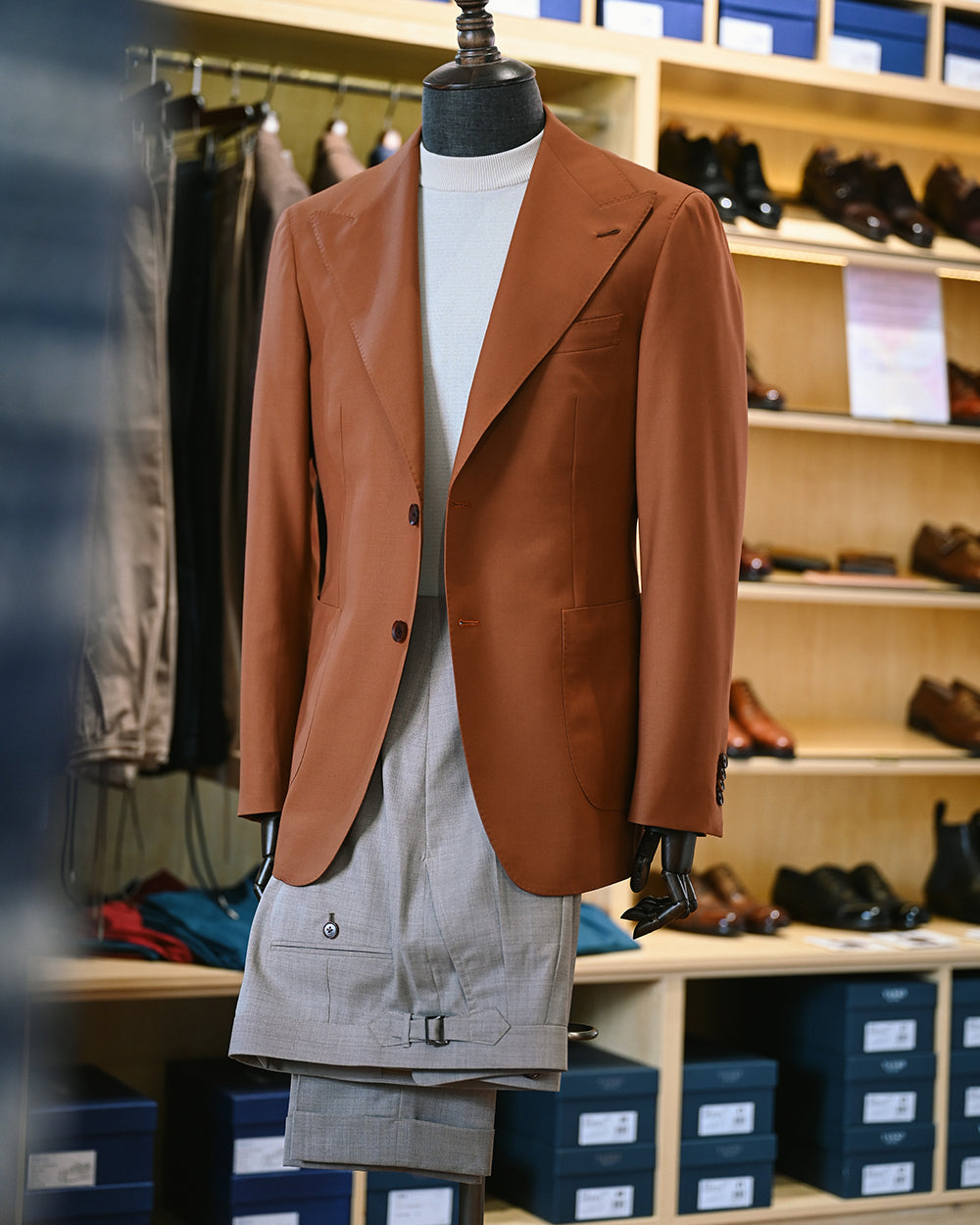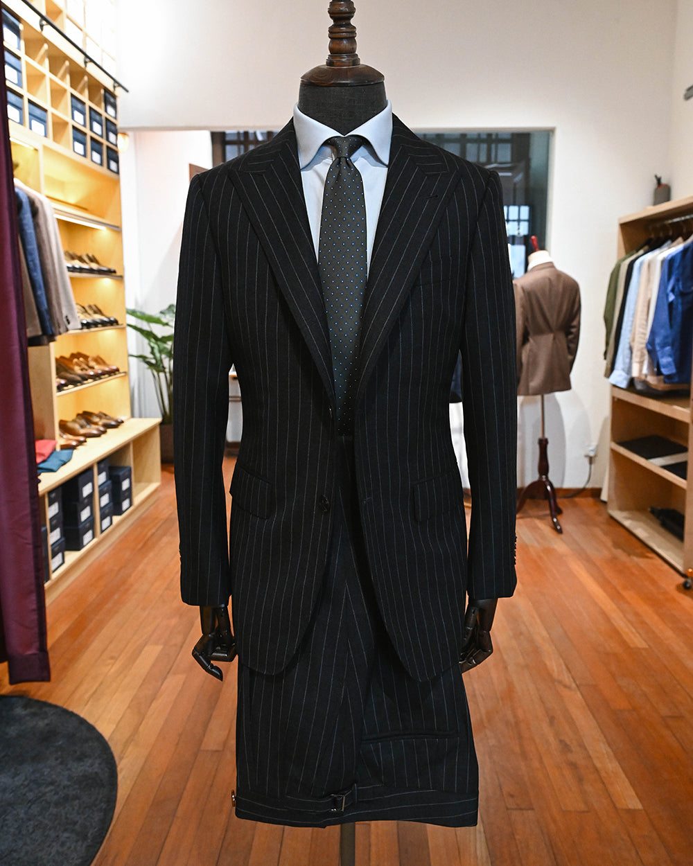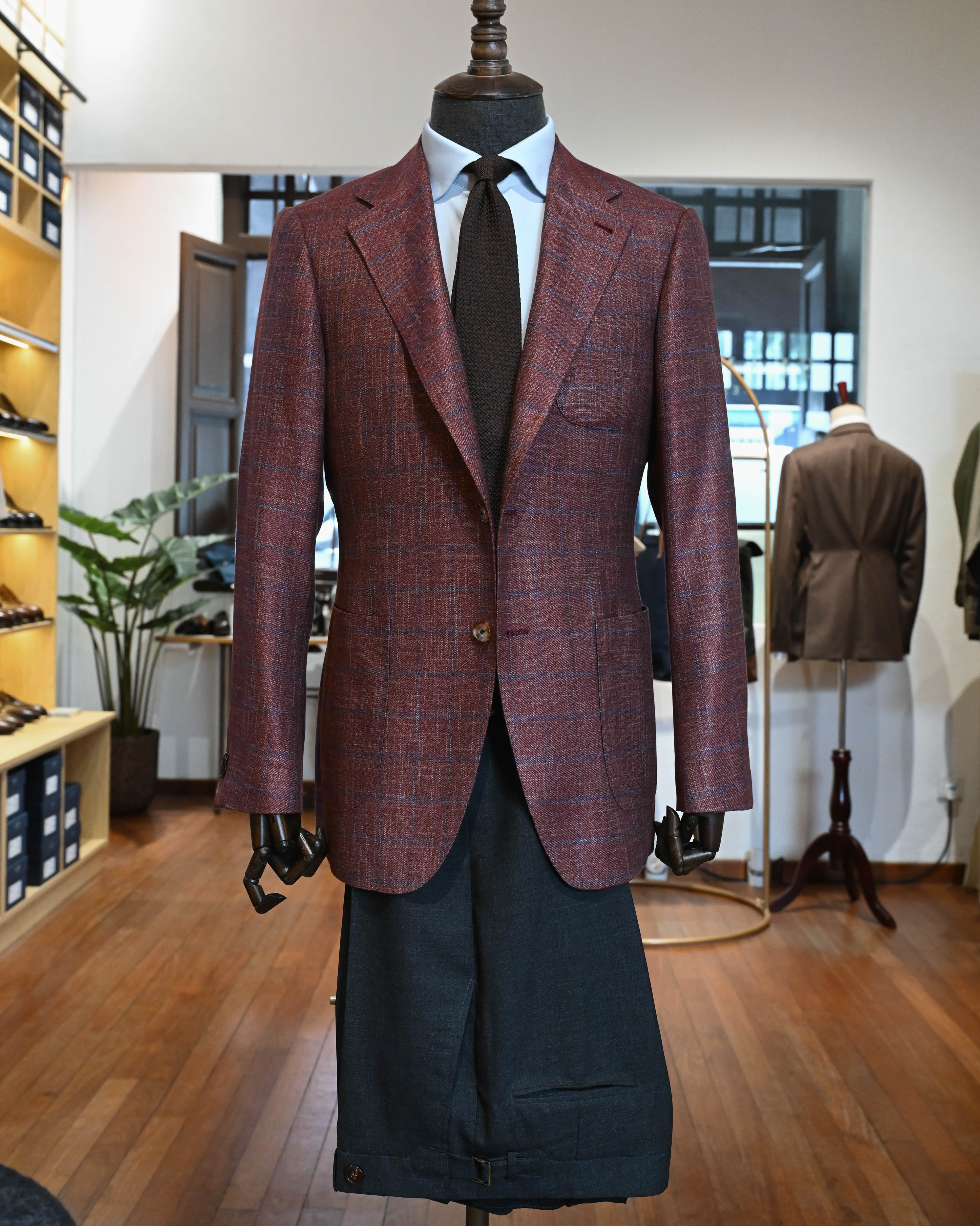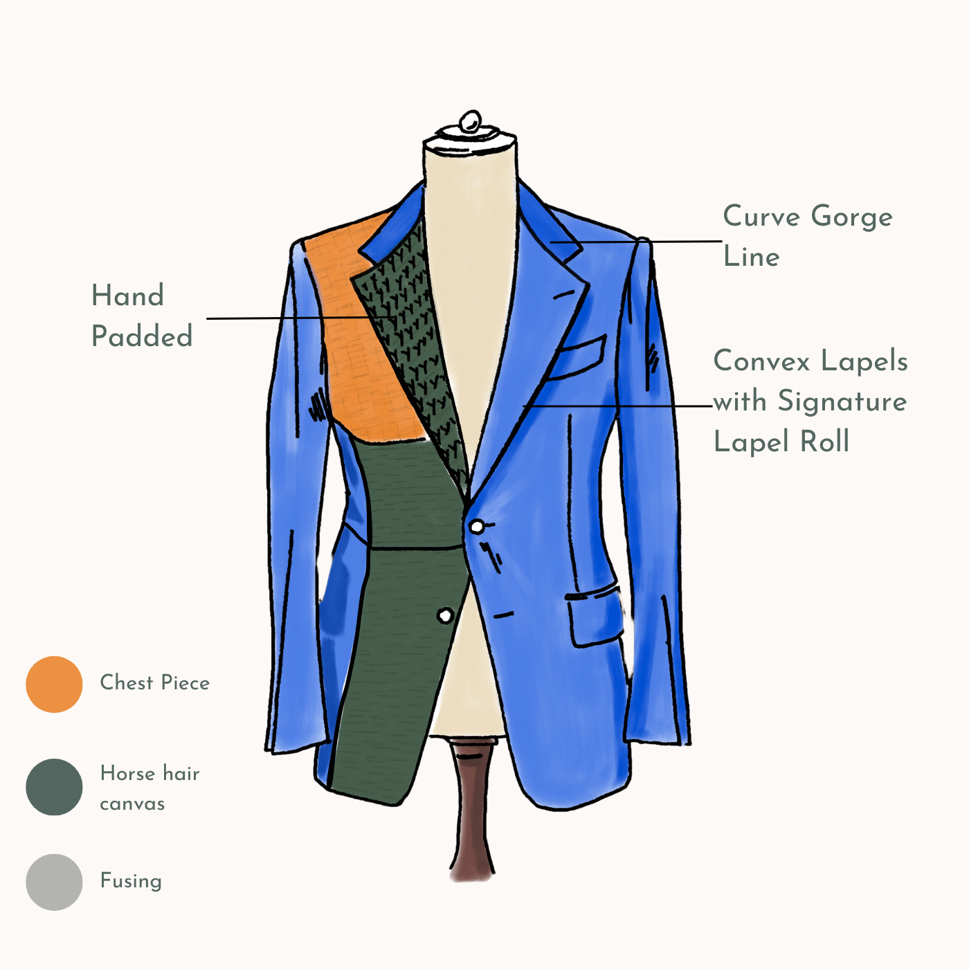 Our House Bespoke pays close attention to fit, details and craftsmanship. Every bespoke jacket will measured and cut from scratch, accounting for body nuances and standing postures. Our house style for MTO, MTM, and House Bespoke collections showcases a curved gorge line and soft shoulder padding. Within the House Bespoke line, we can also cater to specific design requests, such as bellied lapels.